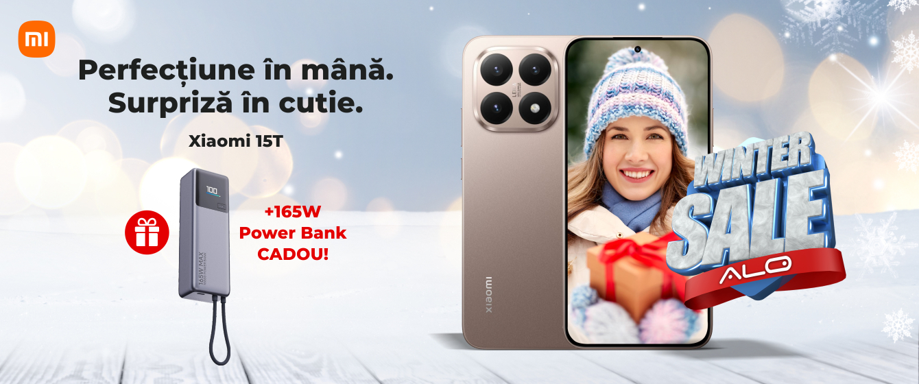 ❄️ Sărbătorile de iarnă - timpul celor mai avantajoase achiziții! 🤩 La ALO primești nu doar un gadget, ci un pachet de top! 🙌 Cumpără flagship-ul Xiaomi 15T și ia cadou Xiaomi 165W Ultra Fast Charger! 🎁 Perfecțiune în mână și putere maximă în buzunar. 💪 O investiție care merită fiecare bănuț! 💰 Comandă online sau vino în magazin!