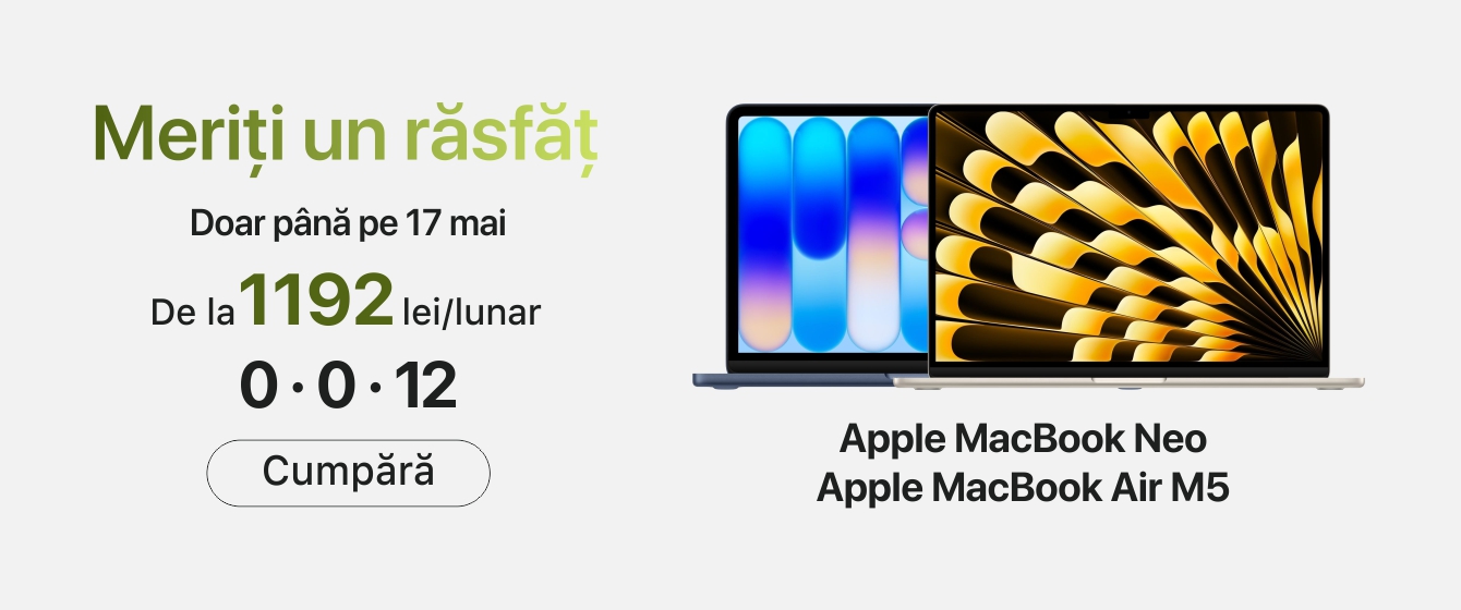 MacBook Neo - MacBook Air M5 - în rate pe 12 luni