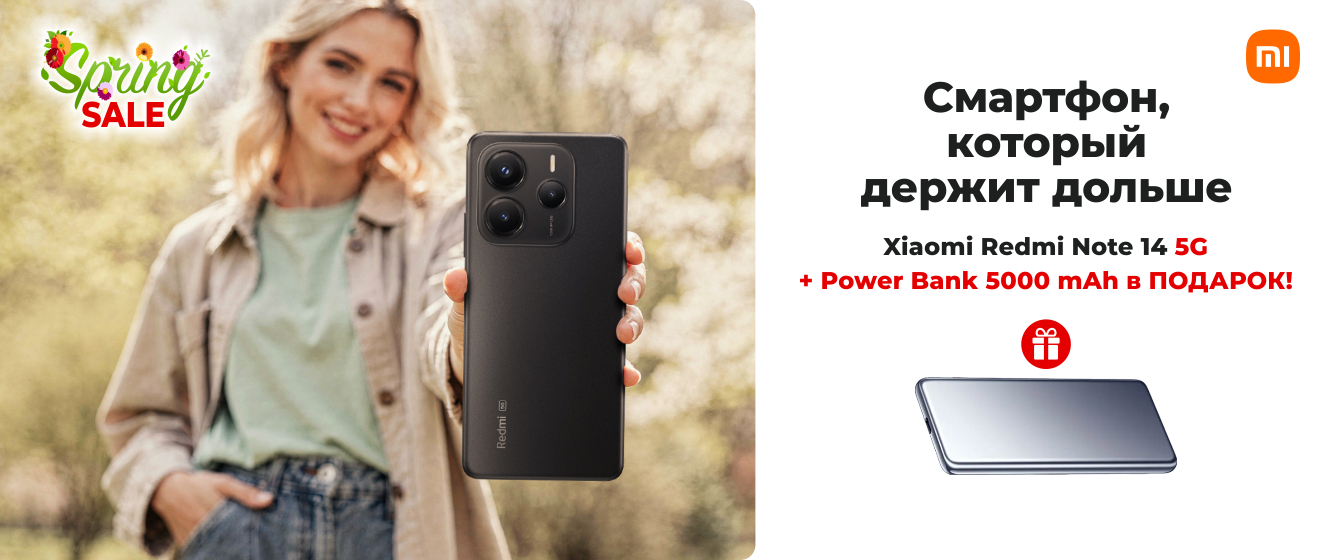 Spring SALE - Xiaomi Redmi Note 14 5G + Power Bank 5000 mAh в ПОДАРОК!